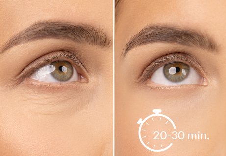 Formula patch dengan kolagen, retinol, seramida dan vitamin C memberikan manfaat anti penuaan dan menutrisi yang lengkap. Setelah penggunaan pertama kali, kulit terhidrasi secara mendalam, lebih halus dan lebih merata. Pemakaian rutin membantu mengurangi lingkaran hitam dan bengkakmeningkatkan kekenyalan dan mencerahkan area mata, memberikan tampilan yang terlihat lebih muda dengan istirahat cukup dibandingkan dengan hasil mesoterapi atau karboksiterapi.